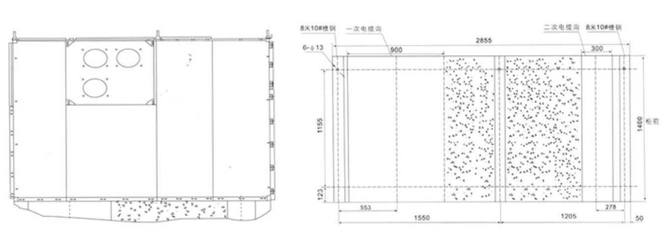 स्विचजियरको शेल र विभाजन चिसो-रोल्ड स्टील प्लेटहरूसँग मिलेर बोल्ड हुन्छन् र सीएनसी मेशिनले पनि प्रोसेस गरे पछि एल्स त्यसकारण, भेला गरिएको स्विचगरले संरचनात्मक आयामहरूको समानता सुनिश्चित गर्न सक्दछ। स्विचगेयर सर्किट ब्रेकर कोठामा विभाजित गरिएको छ, मुख्य बसबार कोठा, एक केबल कोठा र रिले उपकरण कोठा, र प्रत्येक भाग ग्राउन्ड धातु विभाजन द्वारा अलग गरिएको छ।
